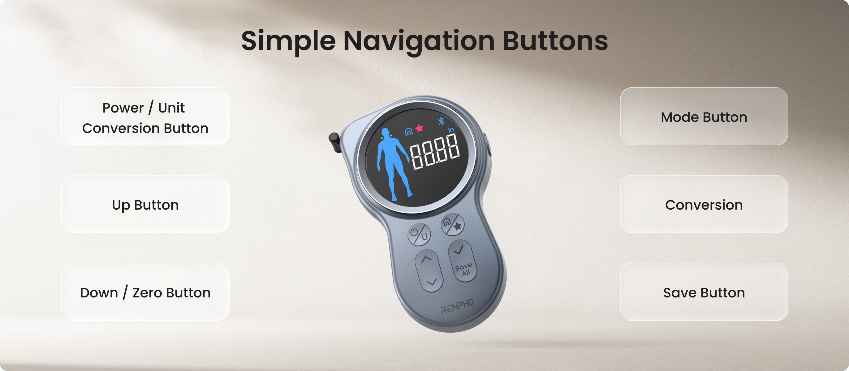 • Synchronizing your measurements with the RENPHO Health App is effortless.