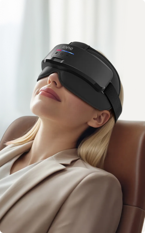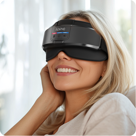 I bought this because I already have had great benefit from a neck and back shiatsu massager, and I have the excellent Renpho body scales, with fat percentage etc. The main benefit I get from the eye massager is in helping me sleep: I find my brain racing, and the mask helps greatly. It uses a combination of kneading the temples, with light pressure and heat on the eyes (the sac pumps up with air to provide pressure without hurting the eyes) and music. there are 5 different programs from 5 minutes upwards. Would definitely recommend