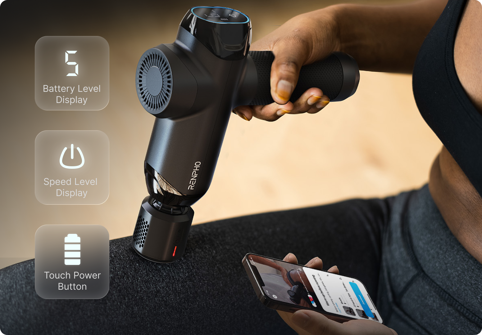 3. Turn on the massager and select the appropriate speed level using the LED touch display.
