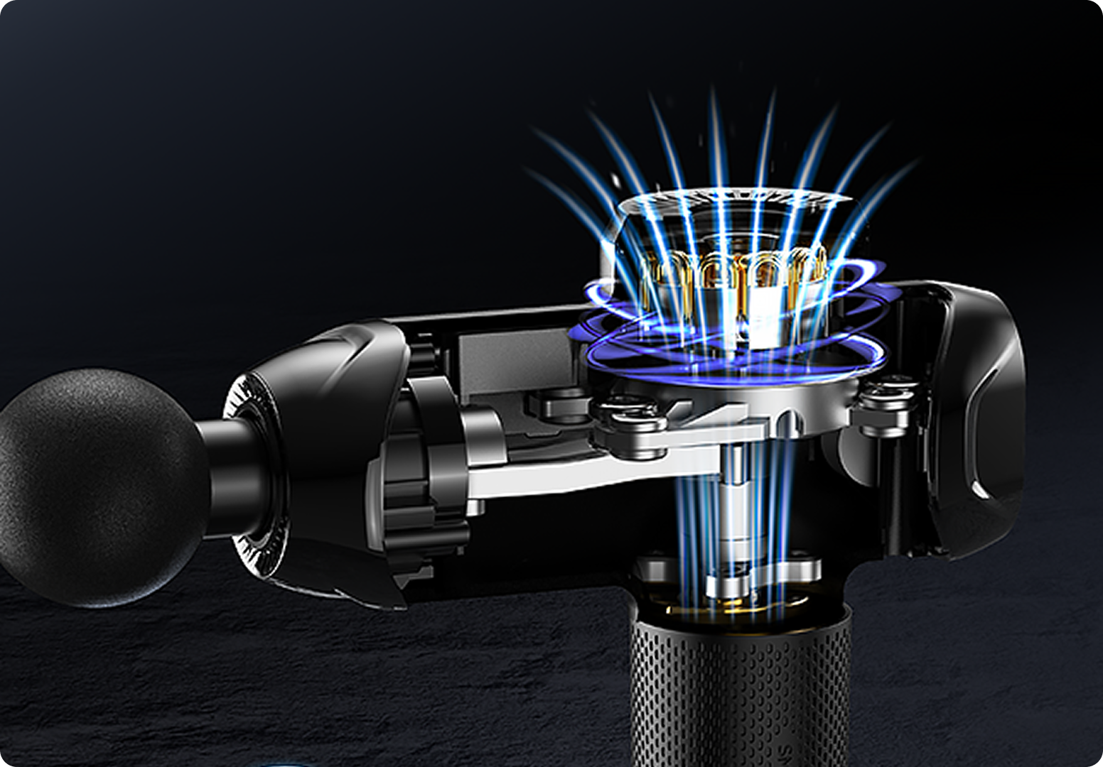 Silent yet compact percussion therapy massage gun design for muscle recovery
