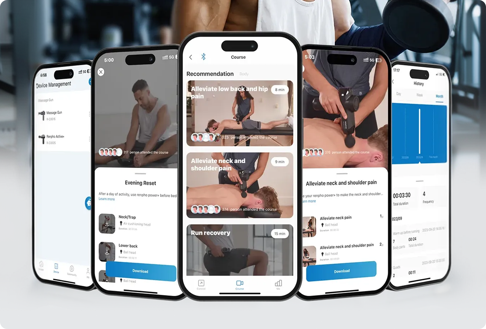 Access 7 structured courses and 24 in‑depth tutorials inside the RENPHO Health App, complete with auto‑adjusting settings and usage charts. Adjust intensity to your liking or let Auto Mode guide you—then return to your saved sessions whenever your body calls for deeper care.