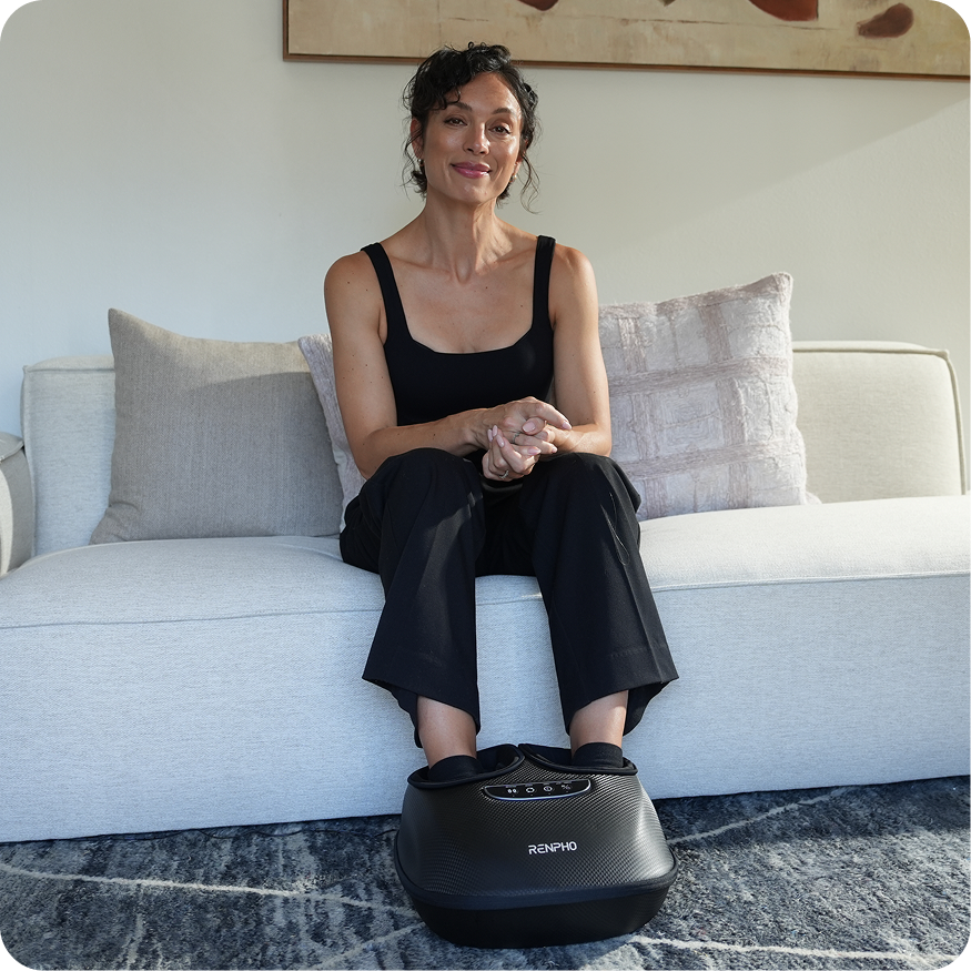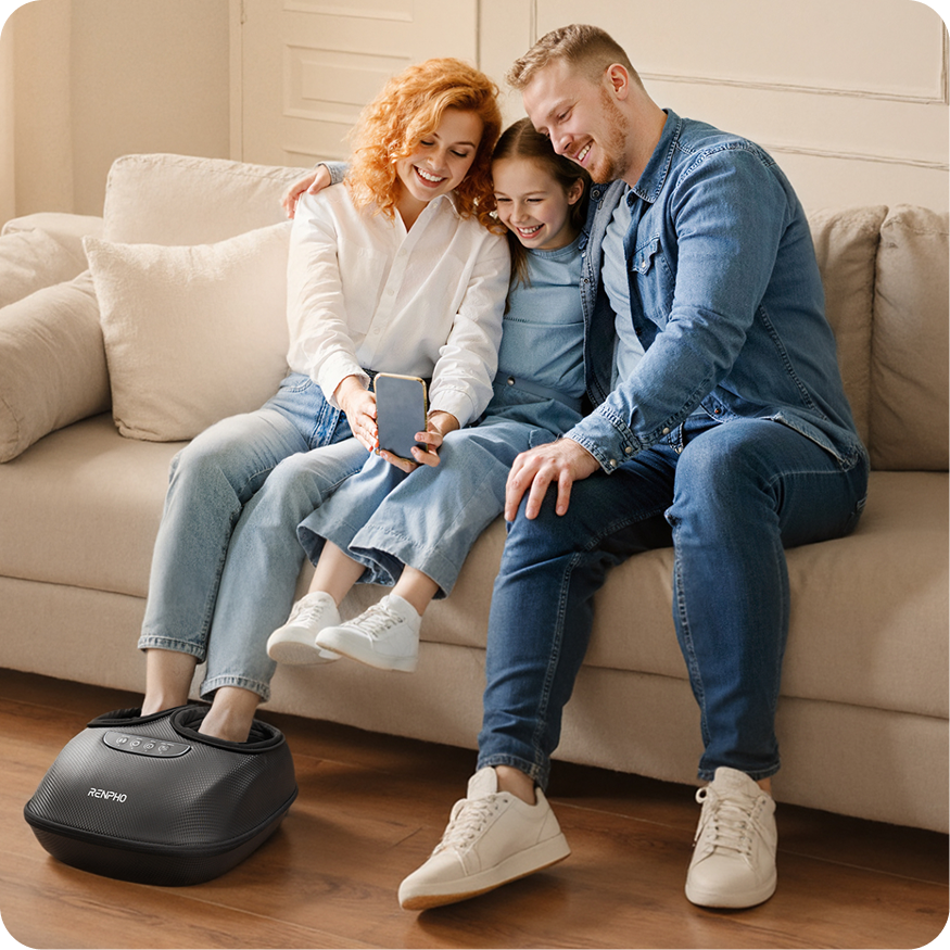 RENPHO full-foot massager delivers enhanced comfort through adjustable deep kneading, compression, and heat, thoroughly targeting the toes, plantar, arches, heels, insteps, and ankles.